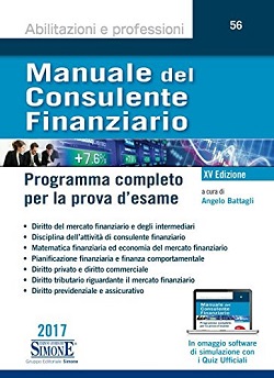 E’ uscita in libreria l’edizione 2017 de “Il Manuale del Consulente Finanziario”, Simone Edizioni Giuridiche, manuale completo per la preparazione dell’esame OCF per Consulente Finanziario, di Angelo Battagli in linea con i contenuti dei quesiti ufficiali OCF 2017.